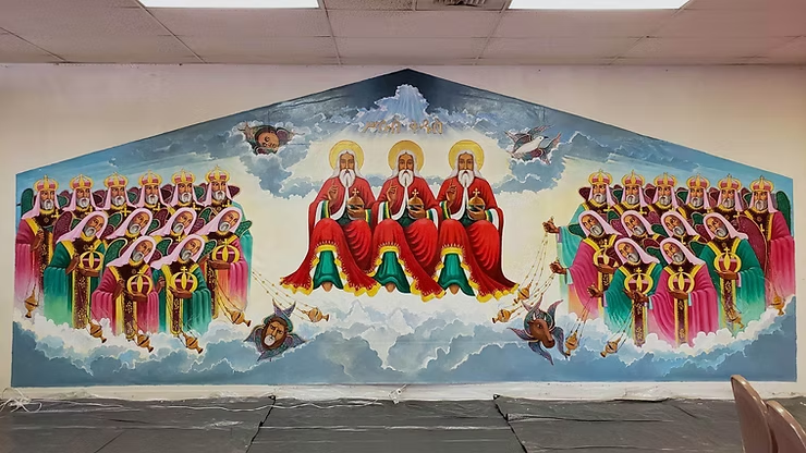 Ethiopian sacred art draws from early Christian sources, blending Byzantine, Coptic, and African traditions into a uniquely Ethiopian expression. The style remains faithful to ancient teachings, with precise attention to symbolic gestures, saints, and biblical narratives portrayed with humility and grace. Each brushstroke carries theological intention. In creating the icons for Debre Bisrat St. Gabriel, I work not only as an artist but as a servant of a living tradition—a spiritual legacy that continues to inspire and uplift.